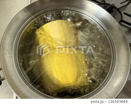 鍋で茹でている糸南瓜