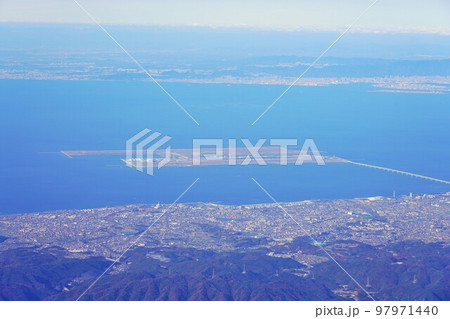 手前和歌山側から関西空港、遠く神戸方面を望む
