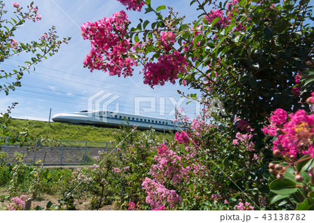 東海道新幹線N700系とサルスベリ