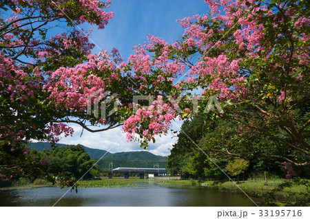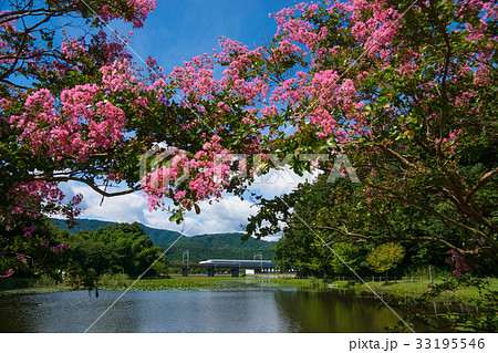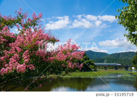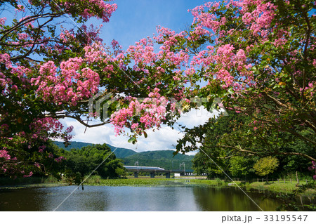 十九女池の百日紅とN700系新幹線