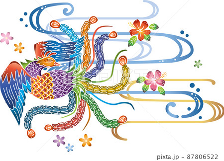 沖縄の伝統工芸琉球紅型の鳳凰デザイン