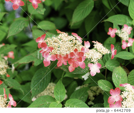 赤いヤマアジサイ 紅(くれない) 季節の花写真素材
