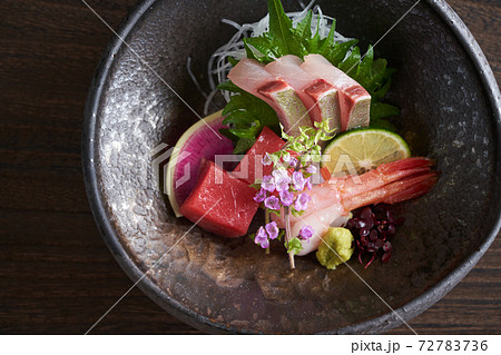 刺身三点盛り(縞鯵 本鮪 甘海老)