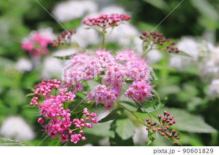 白とピンク色のシモツケの花(源平下野)