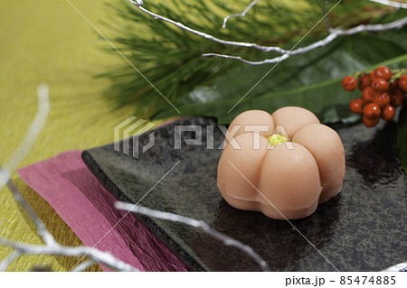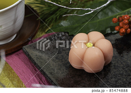 お正月用紅梅の練り切り(日本の白あんを使った伝統菓子)出世、開運などの意味の縁起物