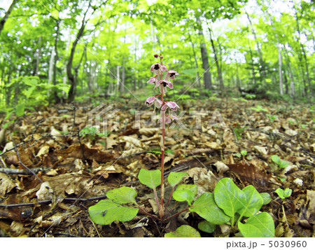 林の日陰に咲くベニバナイチヤクソウの群落【ツツジ科】