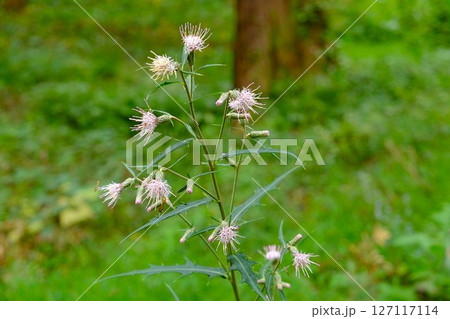 自然 植物 シロバナノハラアザミ、『ノハラアザミ』の白花タイプです。ちょくちょく見かけます