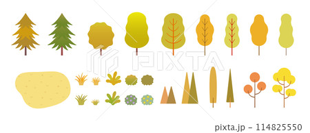 紅葉した木と植物のシンプルなイラストアイコンコレクション 白い背景に分離されたフラットなベクター素材