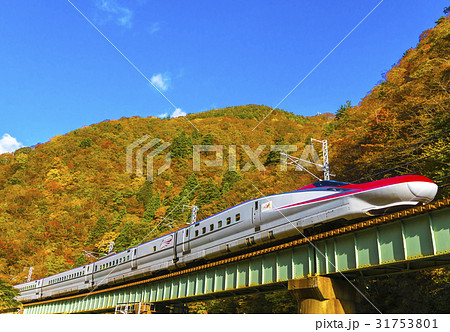 紅葉の中を走る秋田新幹線こまち 仙岩峠
