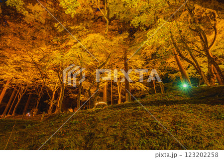 浜松市にあるライトアップされた紅葉の色付き始めた龍潭寺の風景(静岡県)
