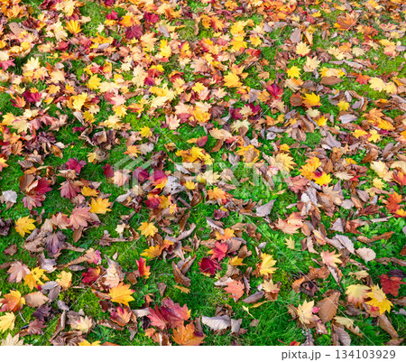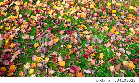 人のいない晩秋の公園で見つけた一面に落葉の葉っぱの絨毯