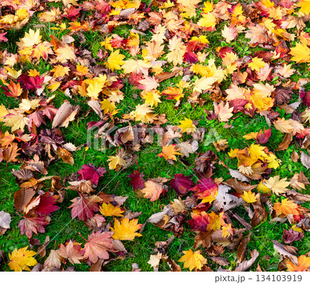 北海道の公園で見つけた色とりどりの一面の枯葉
