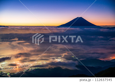 (山梨県)夜明け前、大雲海に浮かぶ富士山