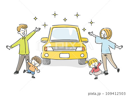 マイカーと家族のイラスト