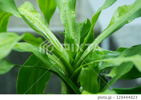 tree in rainy season with raindrop on tropical tree leaf in garden