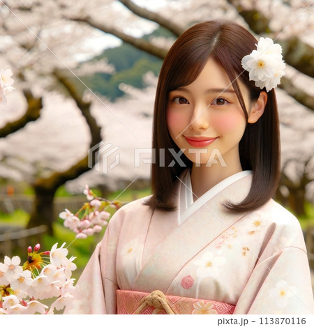 桜の木の下で振袖を着た素敵な女性を生成で描きました