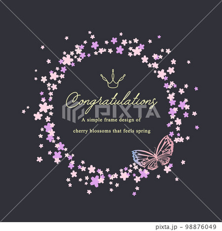 桜と蝶の黒背景フレームデザイン ベクター素材