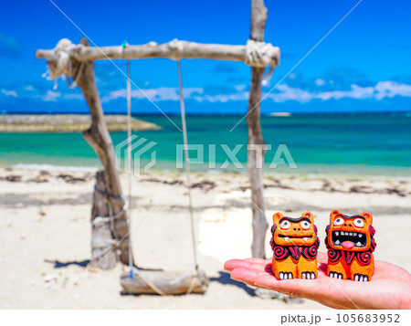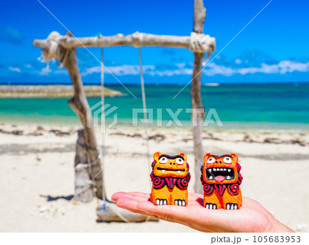 南国の青い空とシーサー