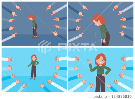 評価をうける広報担当女性のセット