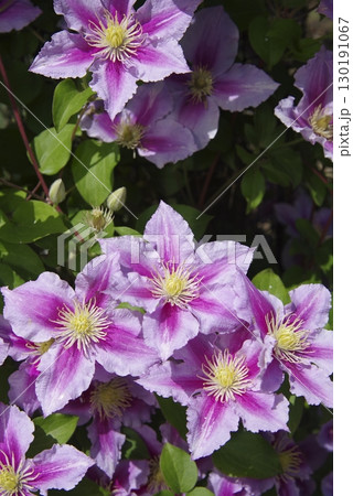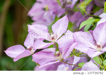 初夏の庭を彩る薄紫色のクレマチス