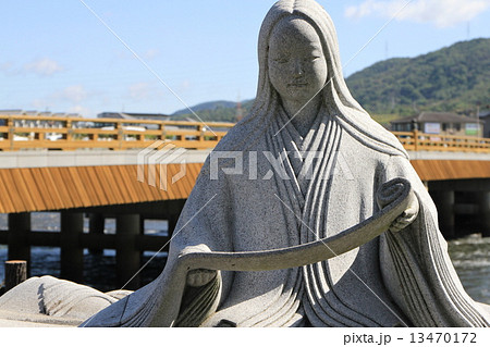 宇治川に架かる宇治橋の西詰にある「紫式部像」