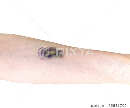 ぶつけて青アザになった腕、紫斑、出血班、打撲、打身