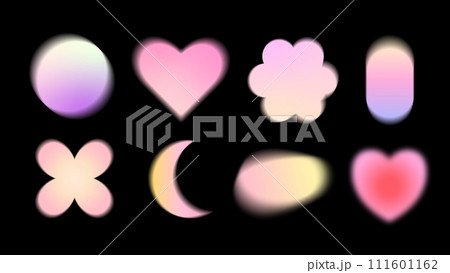 Collection of abstract gradient blurred shapes. Hearts, flower, moon, circle, etc. Contemporary