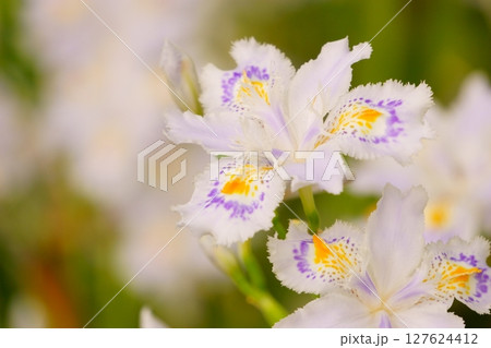 白い花びらのシャガの花