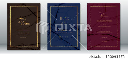 Marble Wedding Invitation Set with Gold Frame in Brown, Navy, and Burgundy