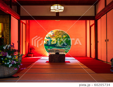 晩秋の鎌倉 明月院 悟りの窓 縦構図