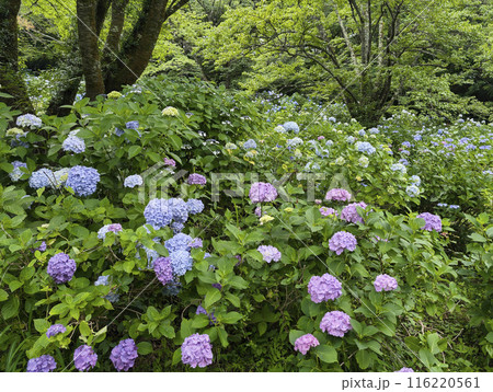 袋井市にある可睡ゆりの園の斜面に咲く紫陽花(静岡県)