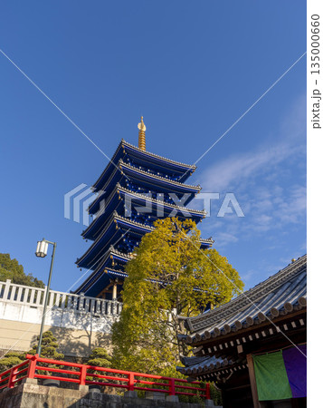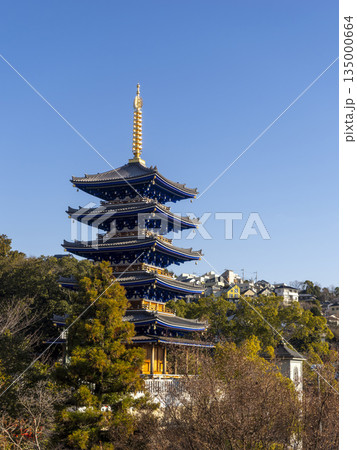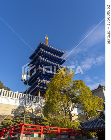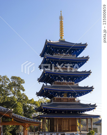 鮮やかな青色の五重塔