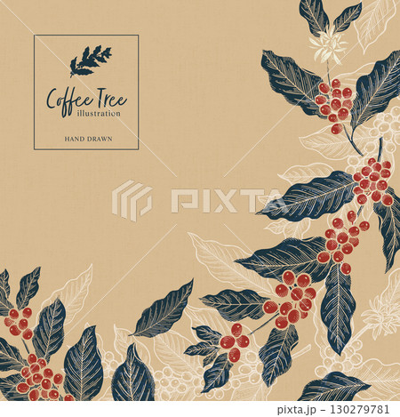 コーヒーの木の線画ベクターイラスト(ベージュ)