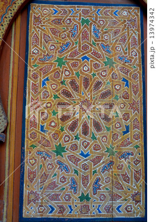マラケシュのバヒア宮殿の細密画の天井画があるファサード