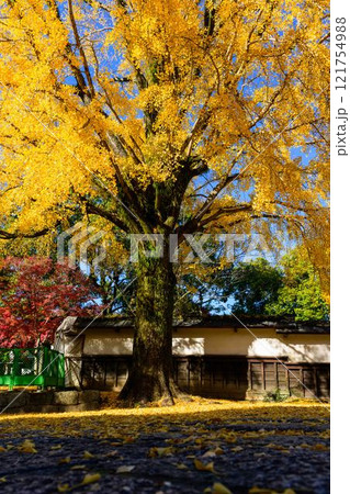 秋晴れ光芒を背景に映える日本庭園イチョウの木 紅葉風景「旧細川刑部邸」竹あかり 限定公開 熊本市