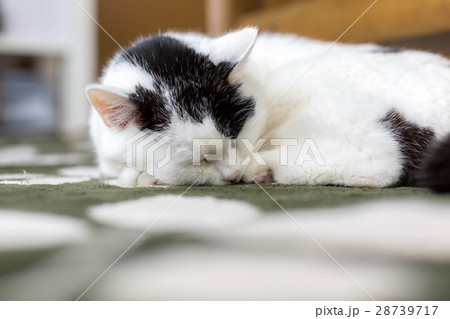 寝っ転がっている老猫の優しい眼差し 顔・アップ