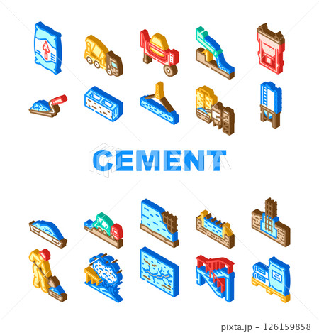 cement portland concrete icons set vector