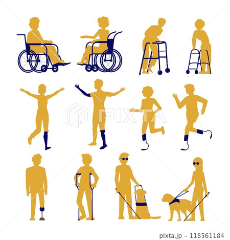 People with disability and special needs silhouette isolated set