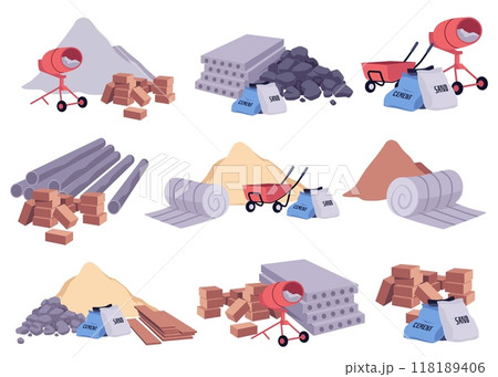 Vector set of building materials. Isolated background.