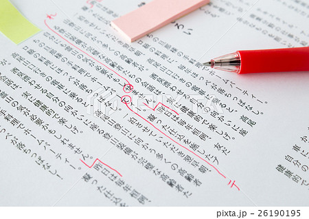 文字校正 編集 手元 アップ 校正紙 印刷物 赤入れ