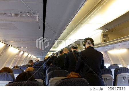 飛行機を降りる人々の様子