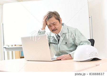 パソコンを操作する悩むシニアの経営者のベクターイラスト素材/ビジネスパーソン/IT/スーツ/DX