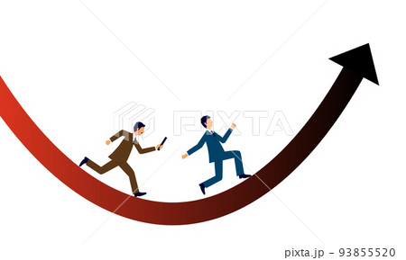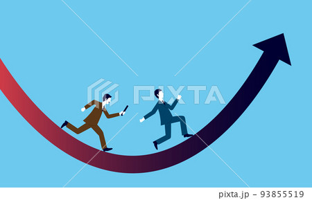 赤字から黒字の転換イメージイラスト、バトンを受け渡す男性、ベクター