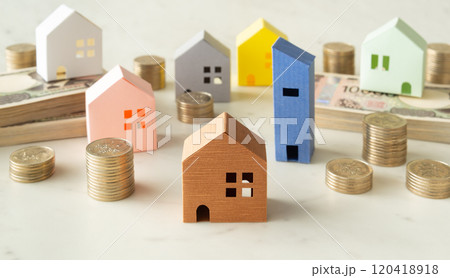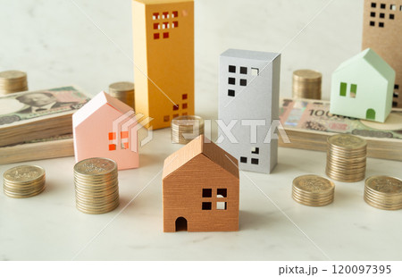 物件と紙幣と硬貨 資産 財産 住居 不動産 家