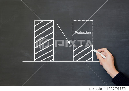 コストカットや無駄を省くイメージのグラフを黒板に描く人物の手元