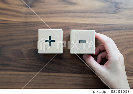 プラスマイナスの木製のブロック