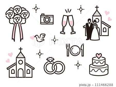 線画 3色アイコン 結婚式 黒