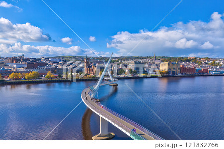 City of Derry aka Londonderry in Northern Ireland aerial view - A Dramatic Cityscape by the River