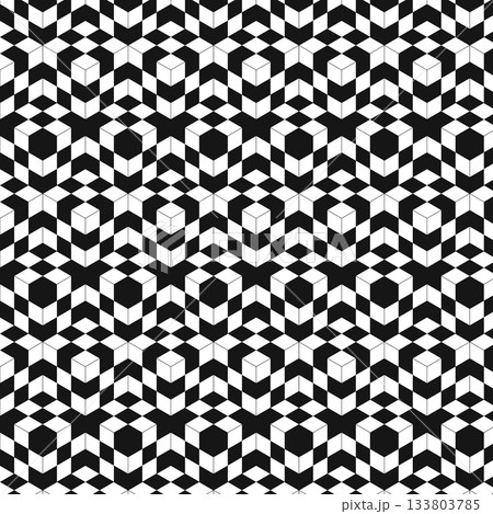 連続する立方体の騙し絵 背景素材 スウォッチ対応 目の錯覚 立体的 3D 黒