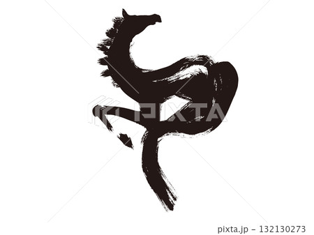 墨筆風 馬の筆文字 イラスト 年賀状素材